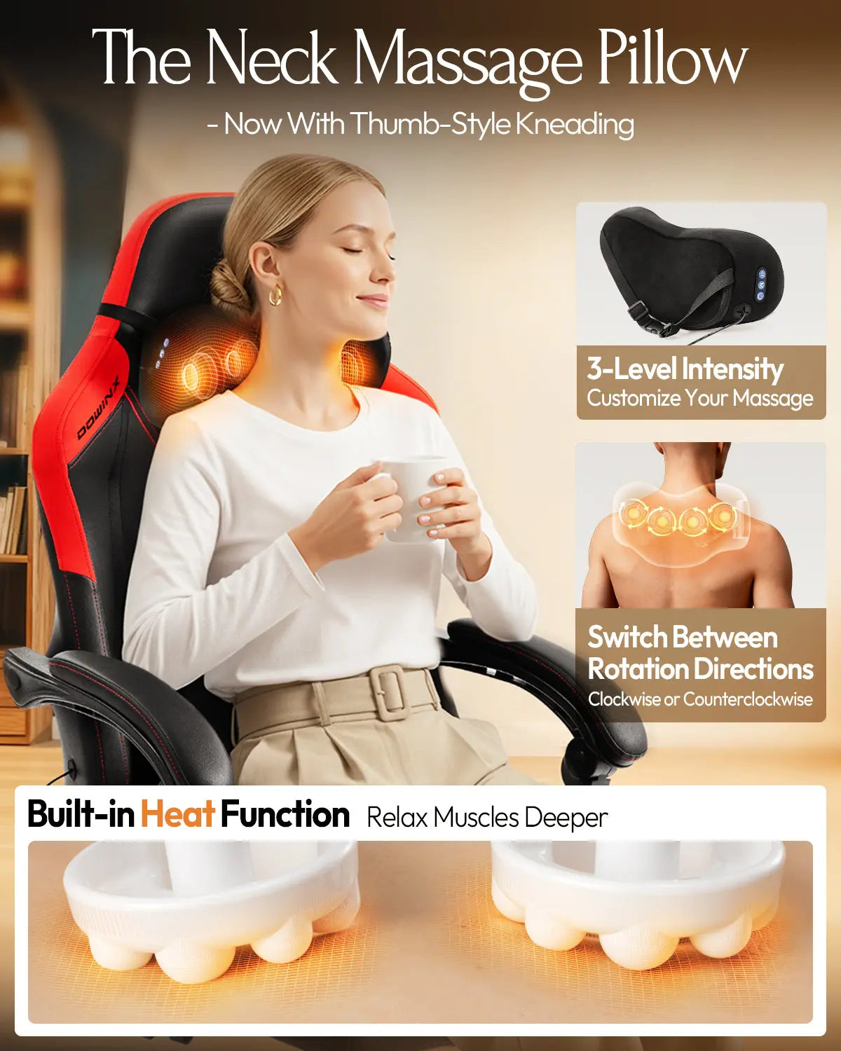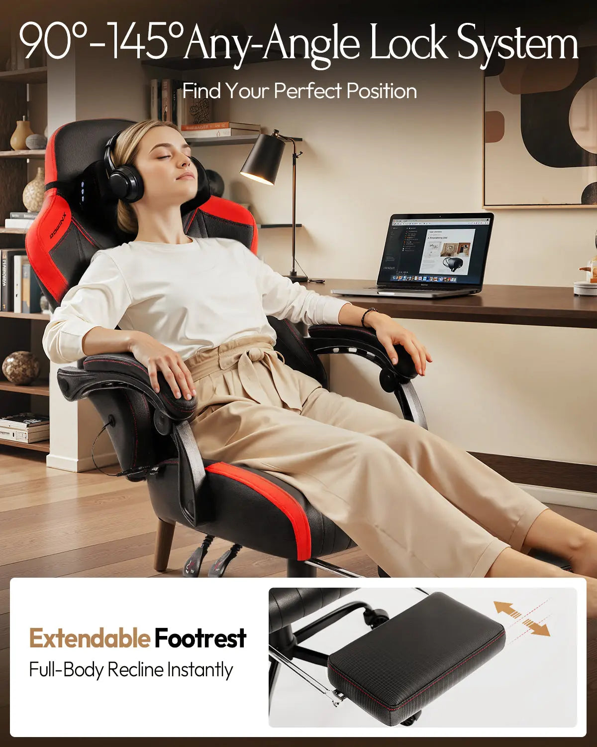The heating function in this office chair with massage works synergistically with the 3D deep-kneading massage. The heat loosens tight muscles beforehand, allowing the massage to work deeper and more effectively. This advanced gaming chair offers clockwise and counterclockwise acupressure massage to relieve fatigue and muscle soreness, giving you a comprehensive therapeutic experience similar to a professional spa. -