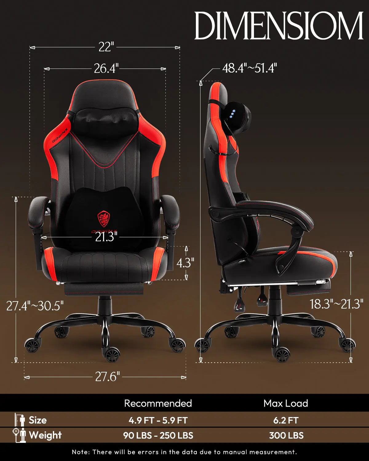 The Dowinx gaming chair is equipped with a high-speed 2800 RPM motor that delivers powerful, deep massage pressure. The 3D massage system precisely mimics human thumb and palm techniques and offers 3 professional modes that target your neck, shoulders, back, and waist. This ergonomic gaming chair also comes with adjustable lumbar and neck support and an ergonomically shaped backrest that promotes a healthy sitting posture – ideal for long sessions. As a versatile PC chair, it combines intense relaxation with lasting comfort. -