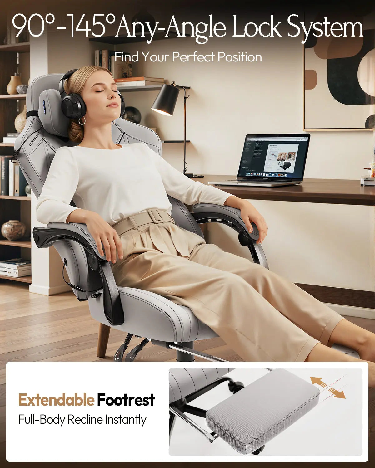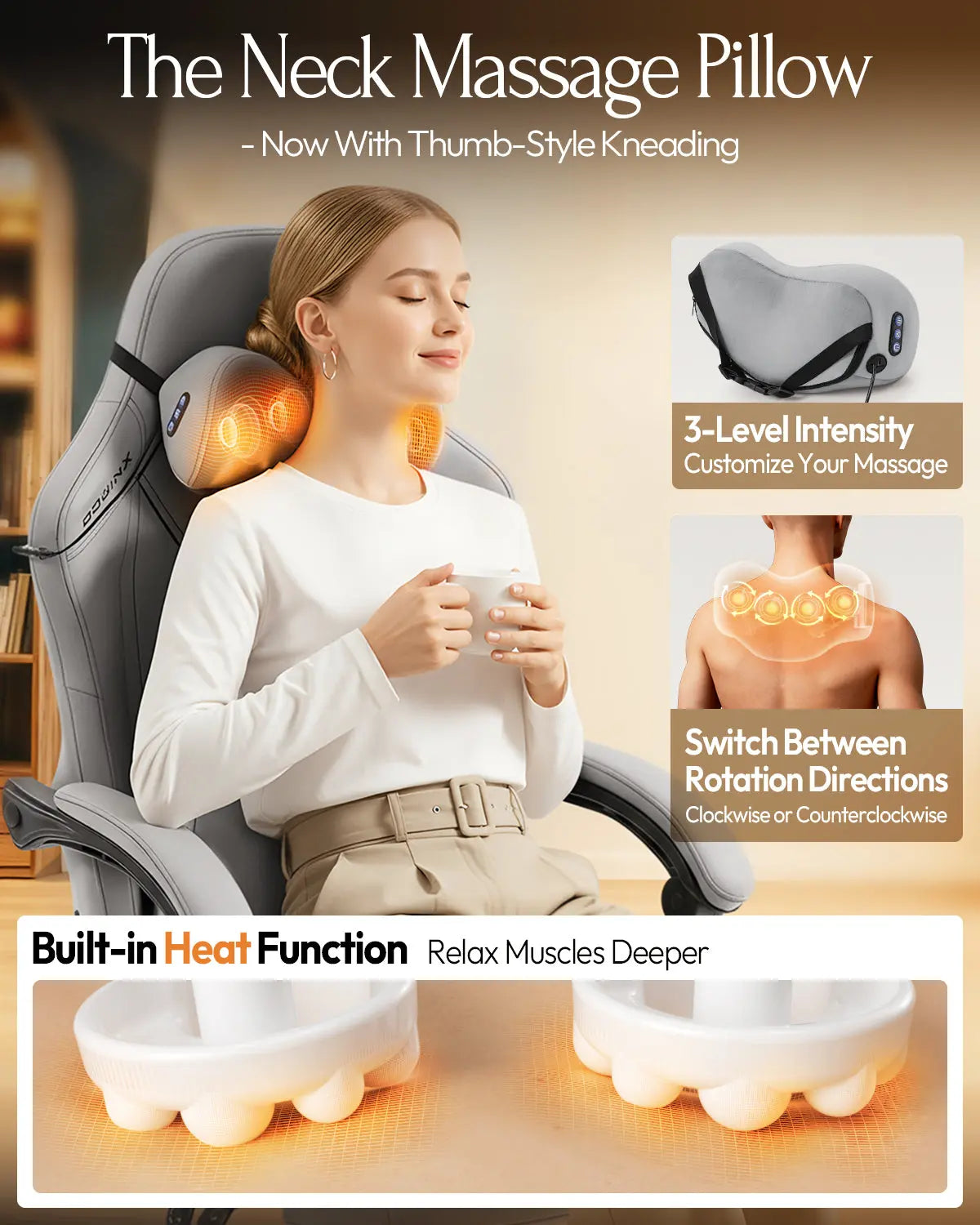 The heating function in this office chair with massage works synergistically with the 3D deep-kneading massage. The heat loosens tight muscles beforehand, allowing the massage to work deeper and more effectively. This advanced gaming chair offers clockwise and counterclockwise acupressure massage to relieve fatigue and muscle soreness, giving you a comprehensive therapeutic experience similar to a professional spa. -