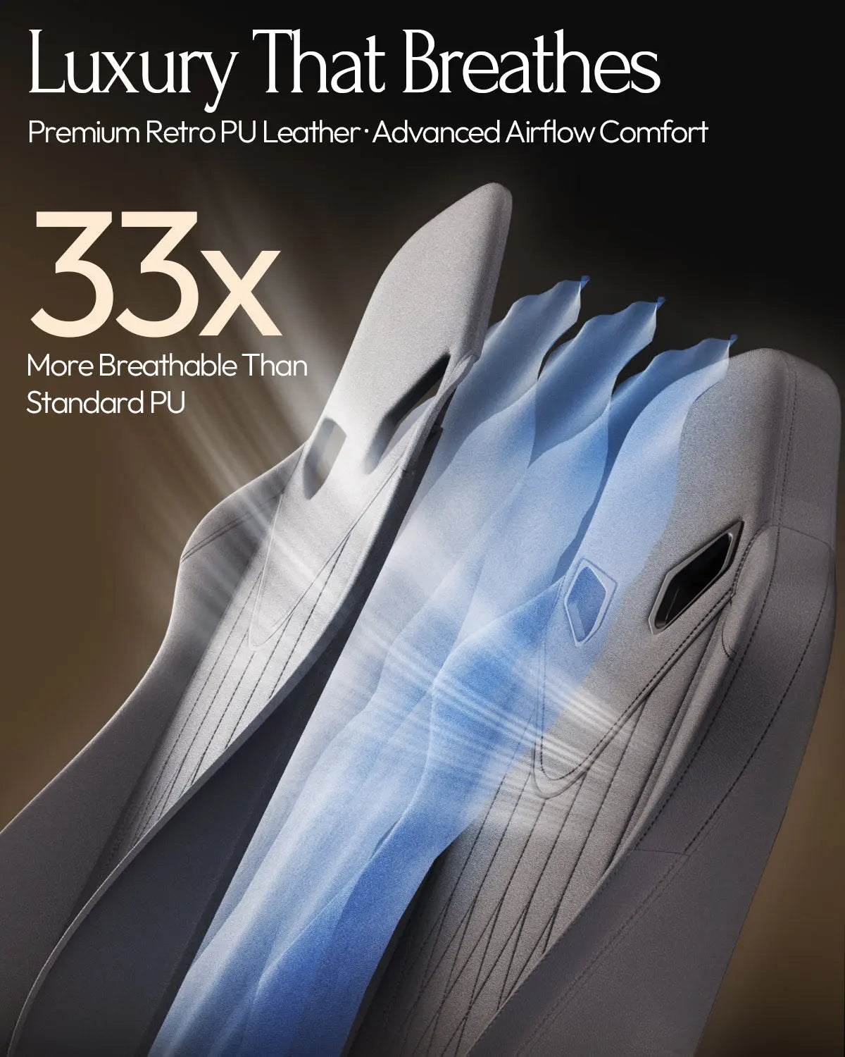 Even with the heating function active, this adult gaming chair always feels fresh. The high-quality gaming office chair leather is 33 times more breathable than standard PU material, ensuring continuous airflow. This is complemented by a unique 12 cm thick spring-core seat cushion whose integrated springs provide exceptional softness, perfect body support, and long-lasting elasticity. It combines cooling ventilation, cozy warmth, and cloud-like cushioning – ideal for long gaming sessions or demanding workdays. -