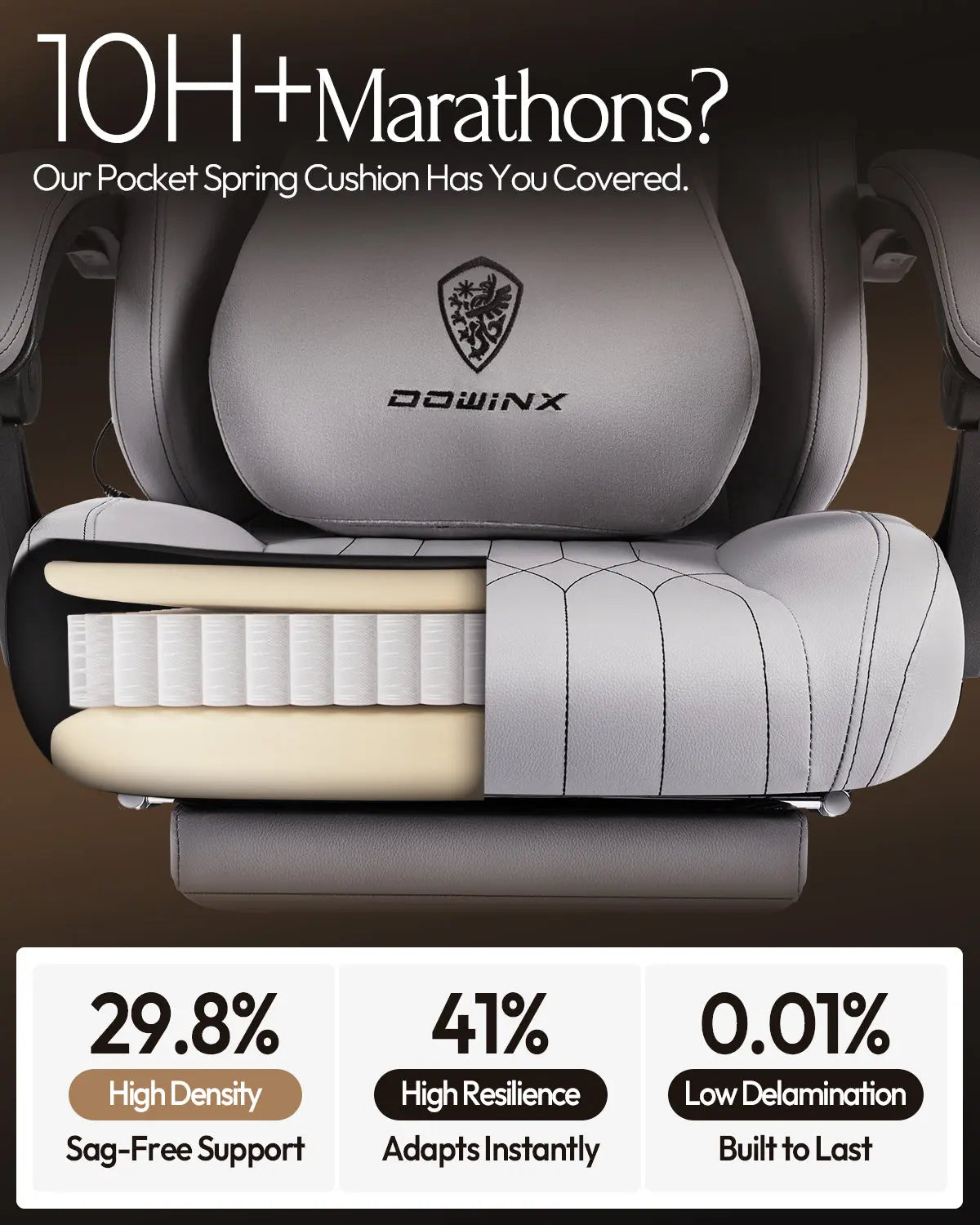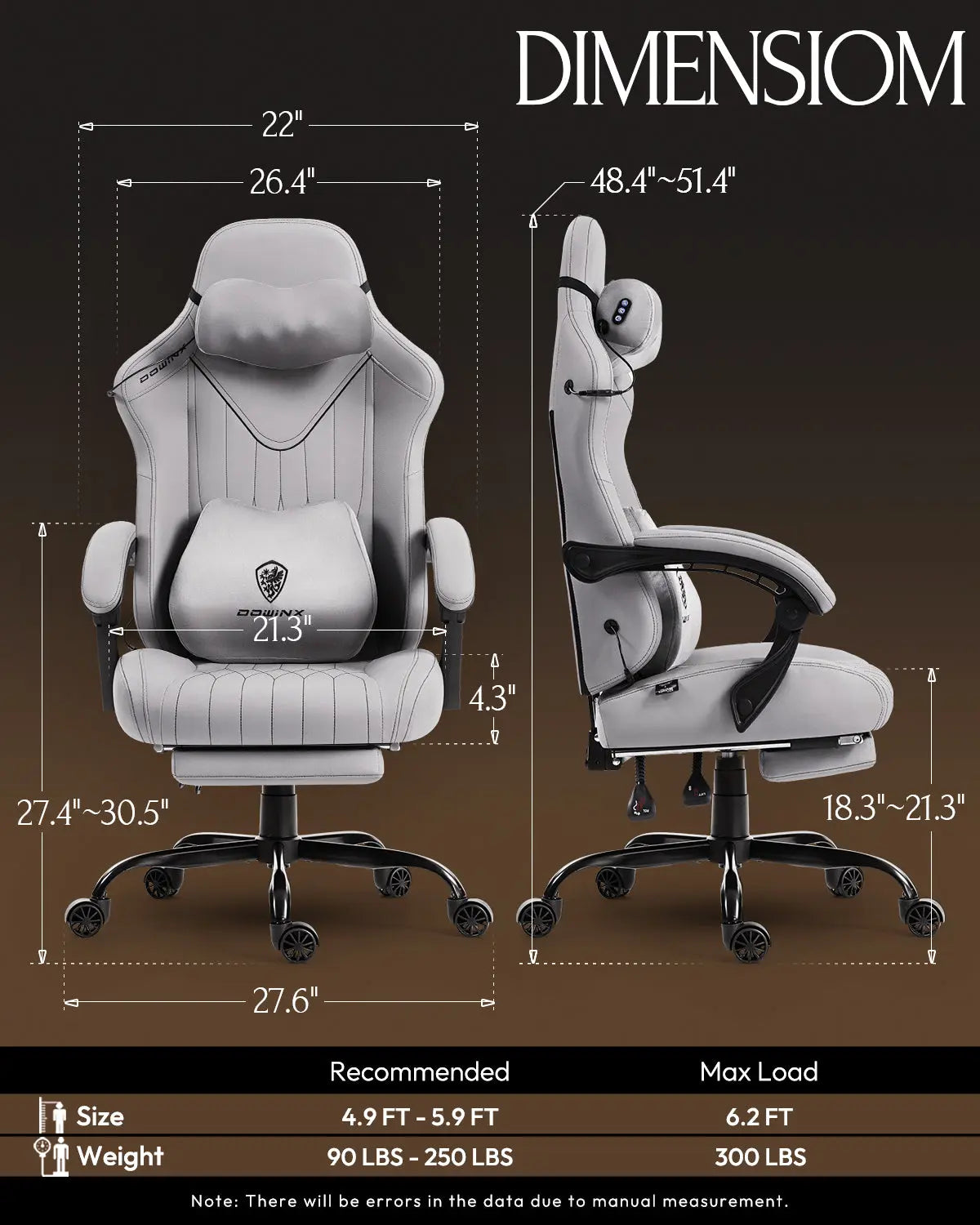 The Dowinx gaming chair is equipped with a high-speed 2800 RPM motor that delivers powerful, deep massage pressure. The 3D massage system precisely mimics human thumb and palm techniques and offers 3 professional modes that target your neck, shoulders, back, and waist. This ergonomic gaming chair also comes with adjustable lumbar and neck support and an ergonomically shaped backrest that promotes a healthy sitting posture – ideal for long sessions. As a versatile PC chair, it combines intense relaxation with lasting comfort. -