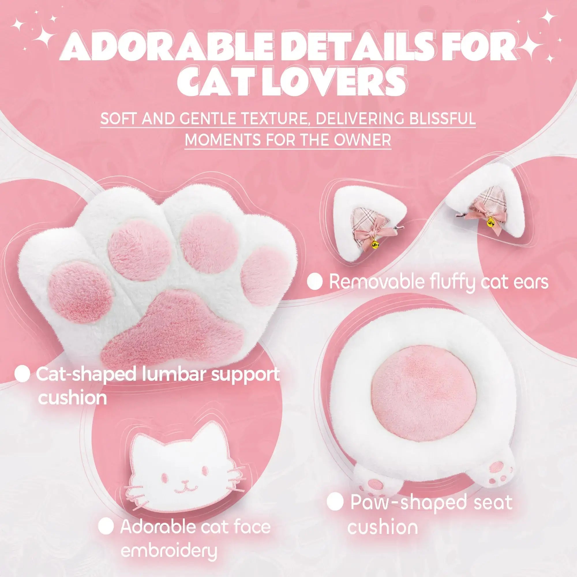 - Flufy Cat paw cushion and lumbar pillow, giving you a more soft and cozy touch feeling