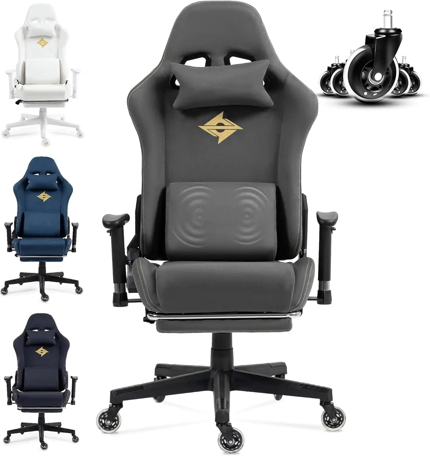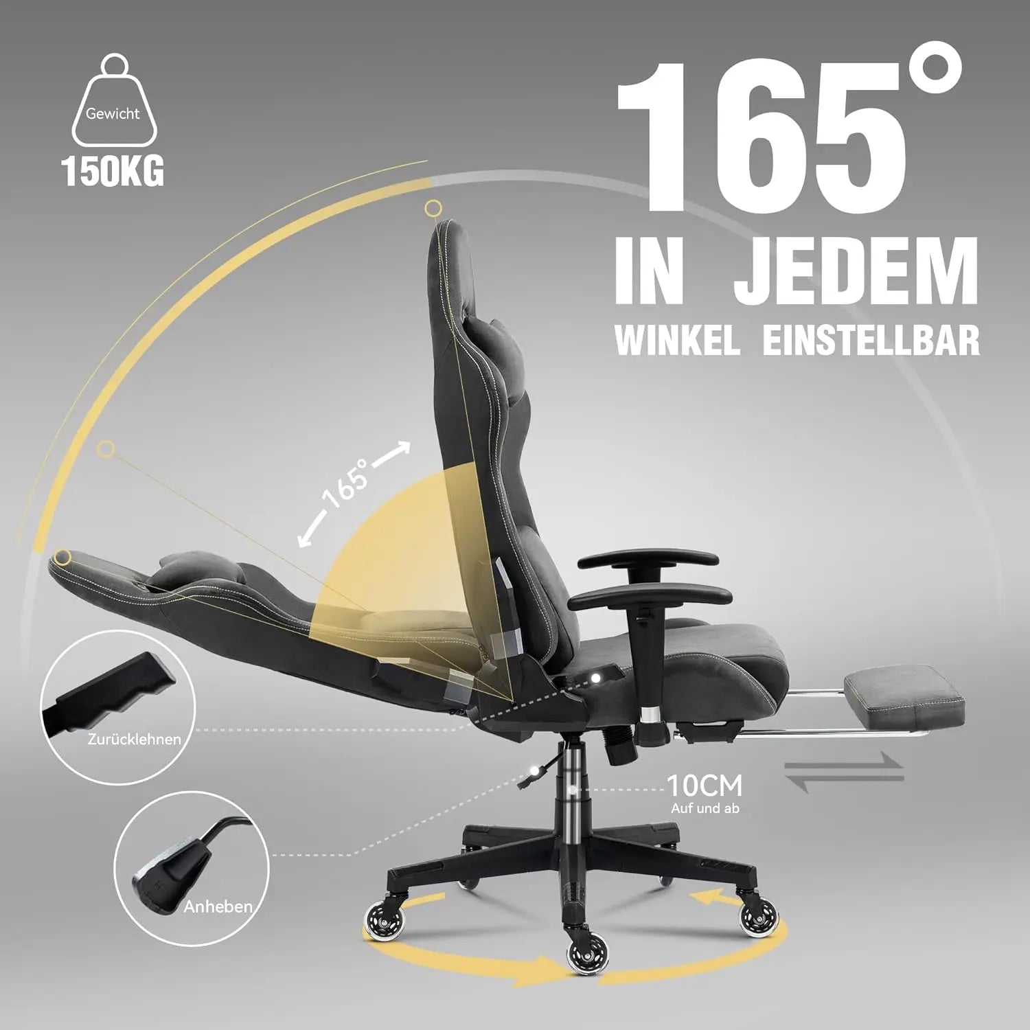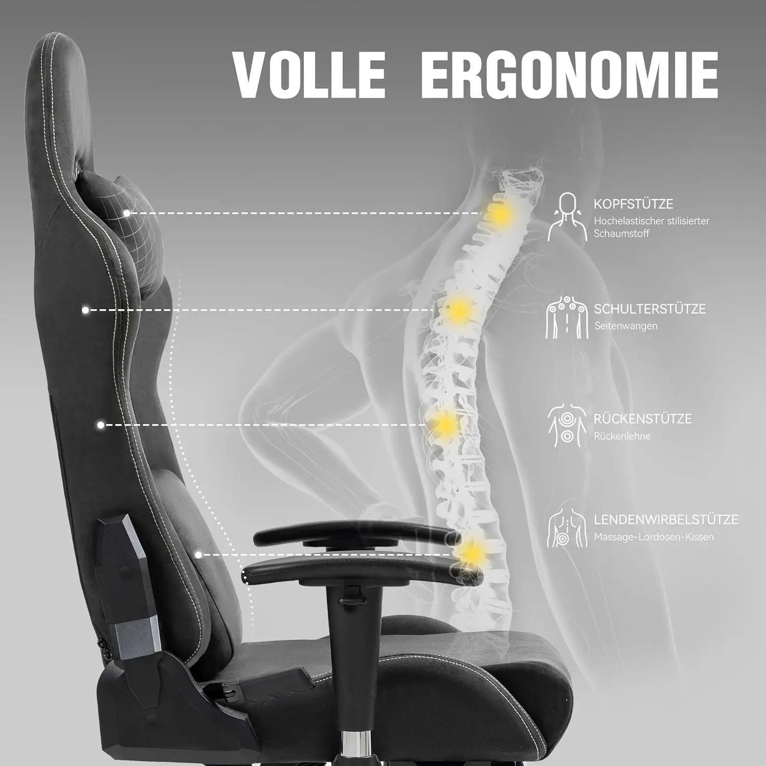 • LUXURY CAR SEATING EXPERIENCE: To create the ultimate gaming experience, we have carefully searched for this fabric that is extremely close to the interior of a luxury car. Different visual colours in different ambient light. Soft and durable with excellent touch feeling. Unlike leather chairs, the fabric has the advantage of being breathable and refreshing and minimises sweating in summer.