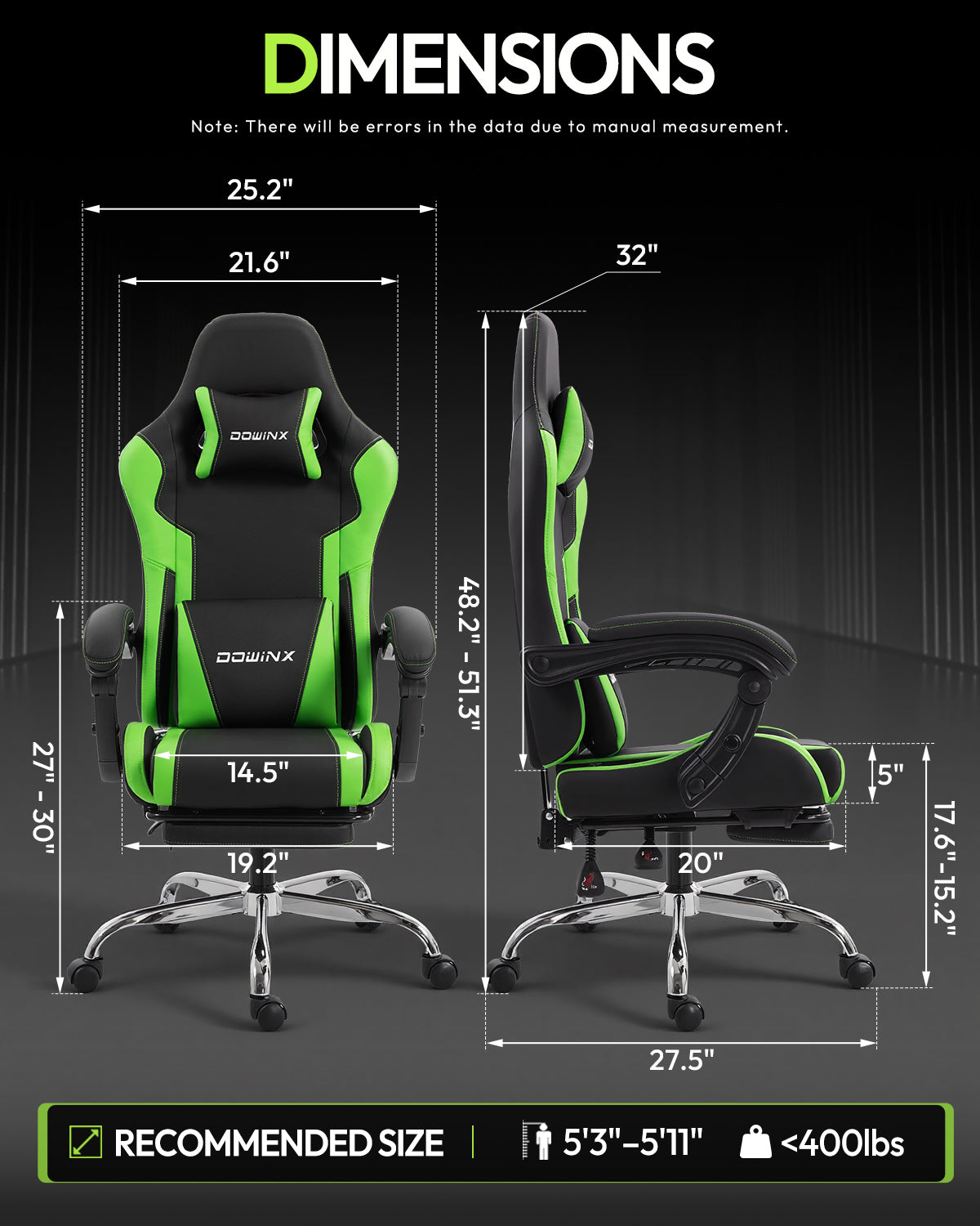 Dowinx Leather Gaming Chair LS-66D58J Black-green