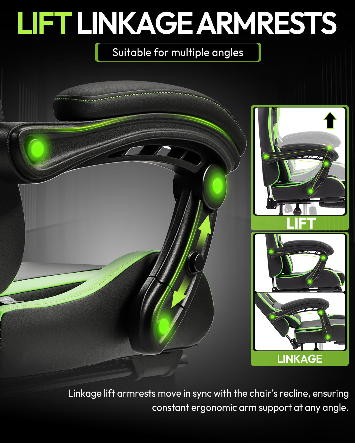 The armrests move in sync with the backrest, providing continuous support for your arms in different positions. Ideal for gaming, working, or relaxing, helping reduce shoulder and arm fatigue.