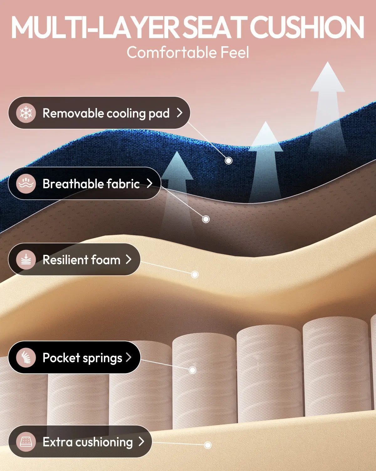Incluye un cojín de gel desmontable que ayuda a disipar el calor y reducir la presión, manteniéndote fresco y cómodo durante largas sesiones sentado.