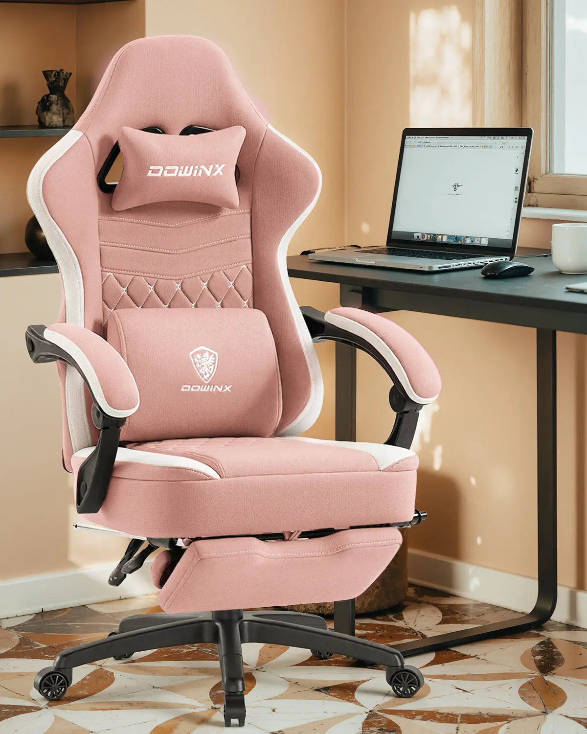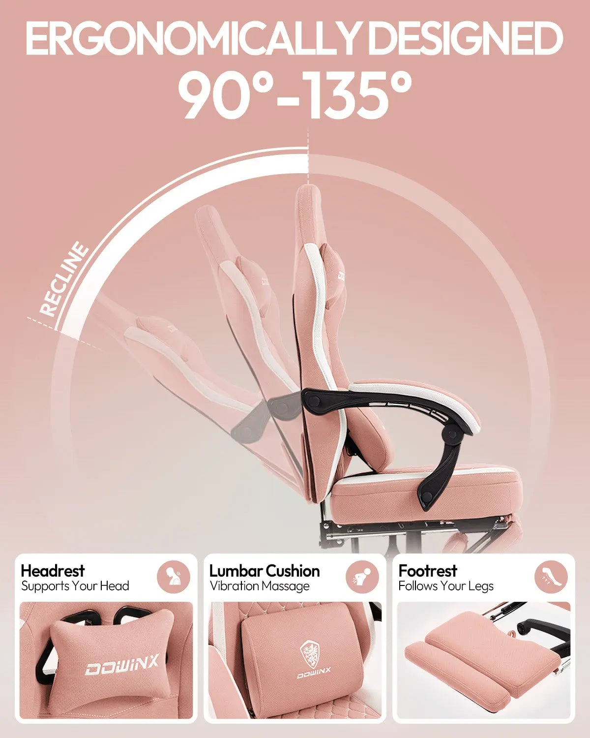 Diseñado con una estructura ergonómica de respaldo alto, que cuenta con un reposacabezas y una almohada lumbar de soporte para promover una postura adecuada y reducir la tensión.