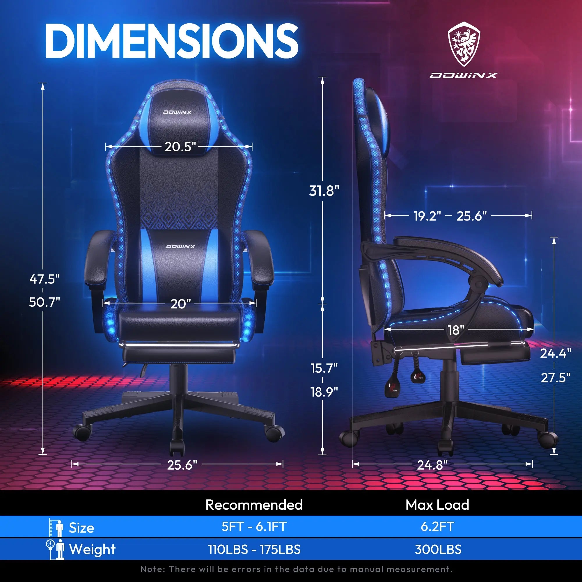 Dowinx RGB LED Silla de juego LS-66LED03 Negro-azul