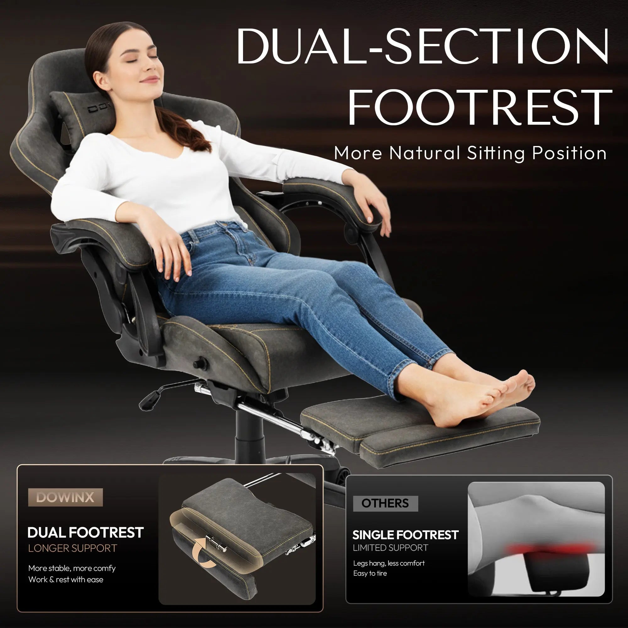El reposapiés extendido incorporado te permite estirar completamente las piernas mientras te reclinas, proporcionando un soporte mejorado y haciendo que recostarse sea más cómodo durante los descansos o el tiempo libre.