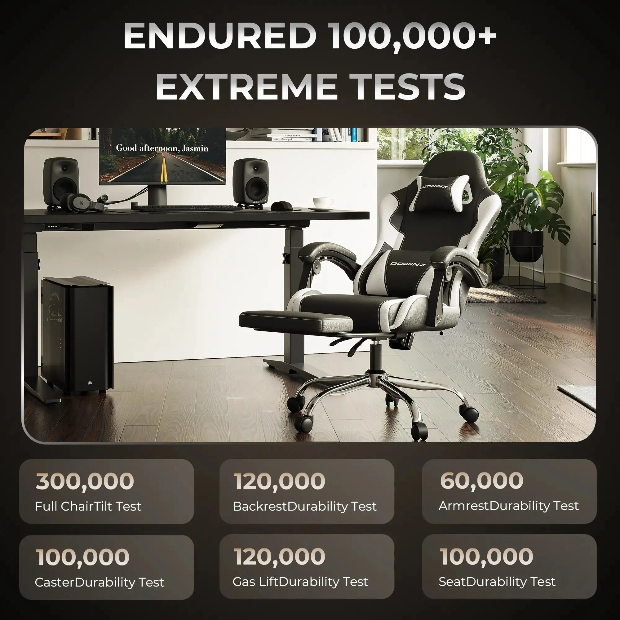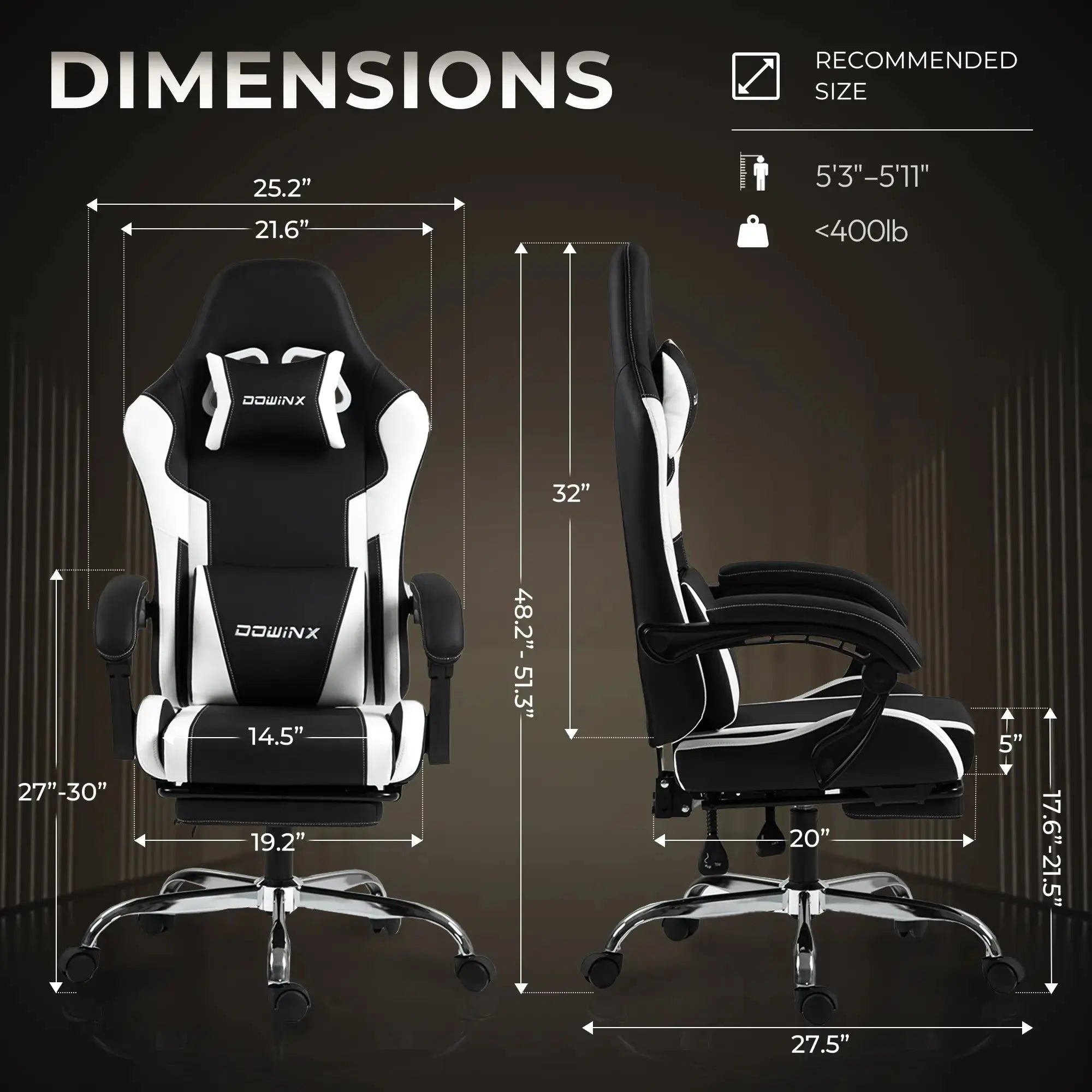 - Say goodbye to pain and maintain optimal posture:This ergonomic gaming chair features a massage lumbar support and an adjustable headrest,providing perfect support for your spine. Whether you're gaming, working, or studying for long periods,you can easily cope without worrying about back pain or discomfort. The Dowinx gaming chair, with its thoughtful design, brings you a natural and comfortable sitting experience.