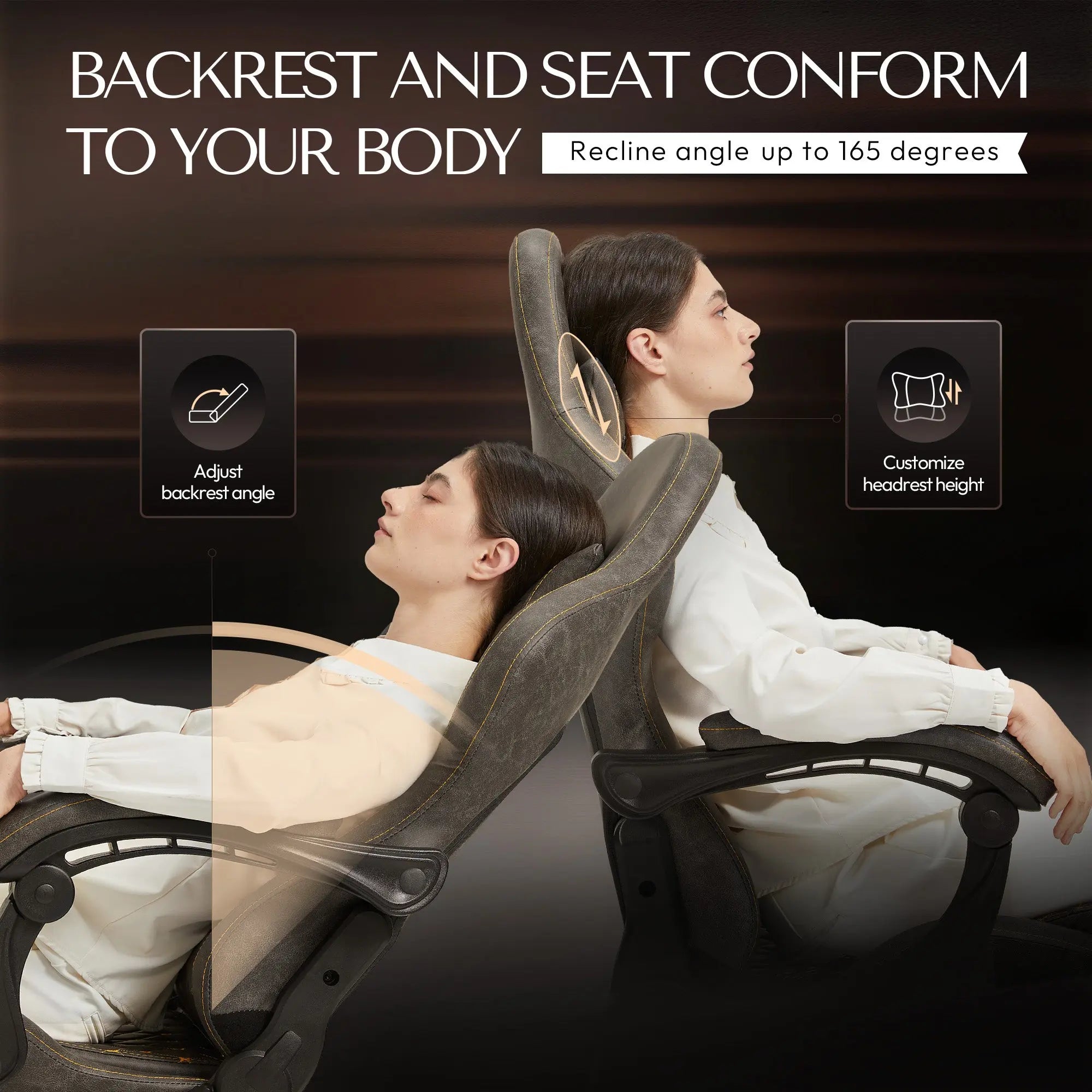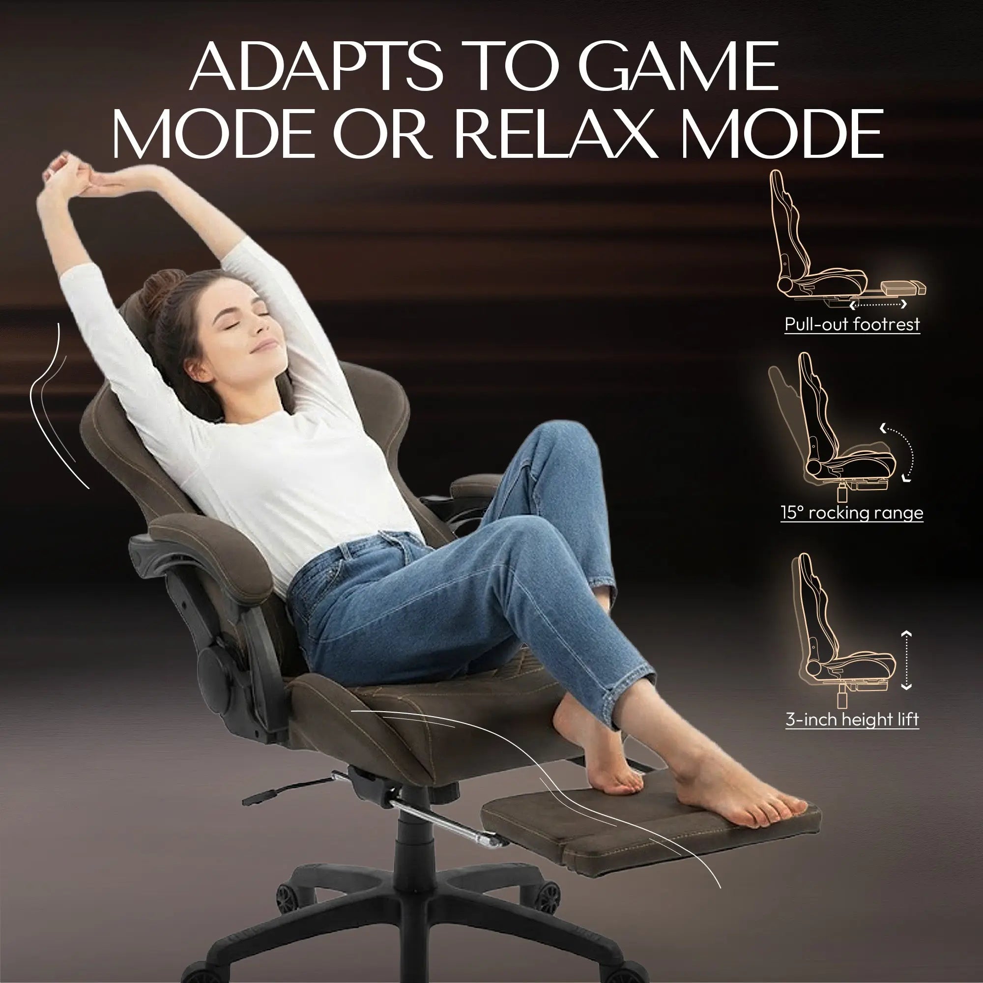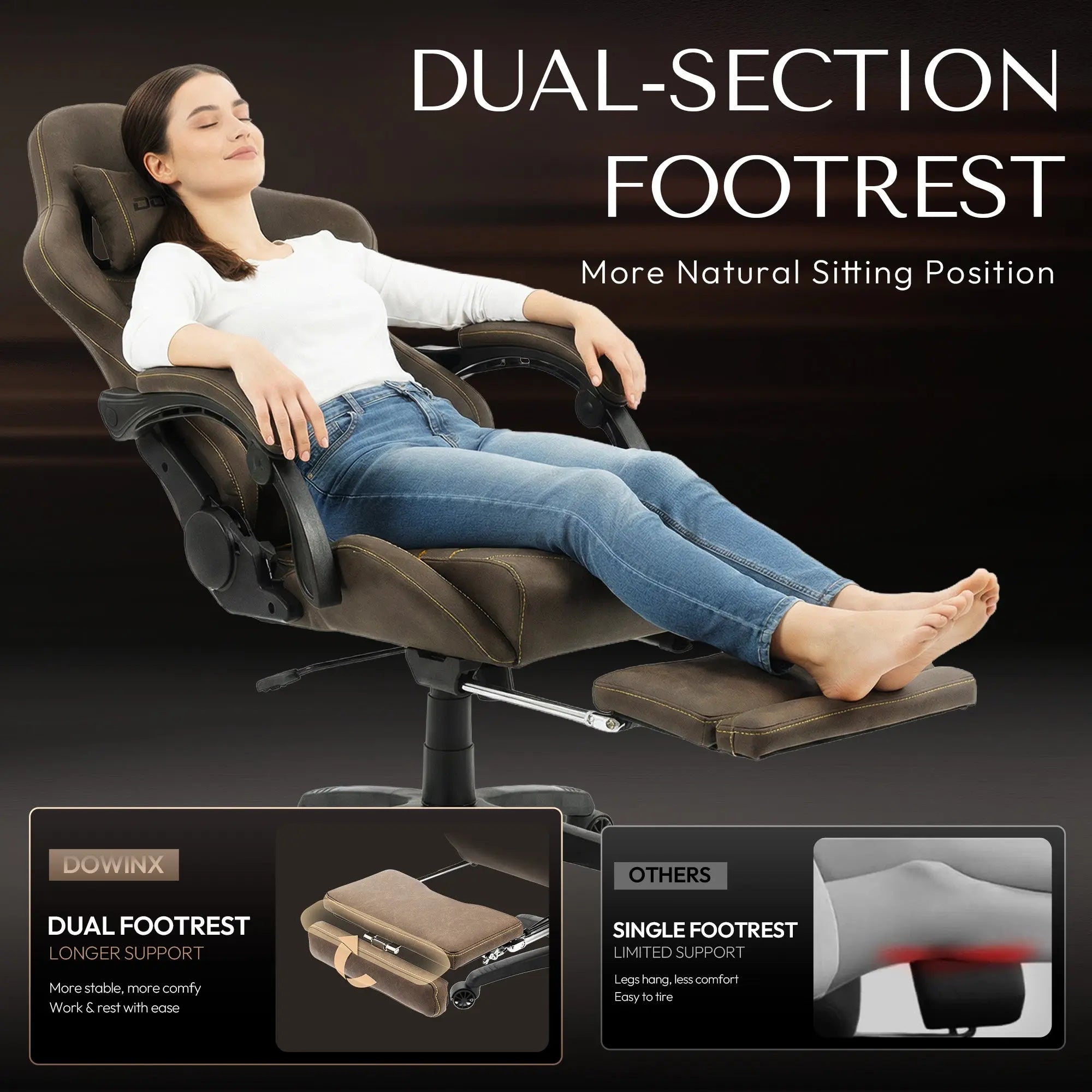 Le repose-pieds intégré et allongé vous permet d'étendre complètement vos jambes en vous inclinant, offrant un soutien amélioré et rendant l'inclinaison plus confortable pendant les pauses ou les moments de détente.