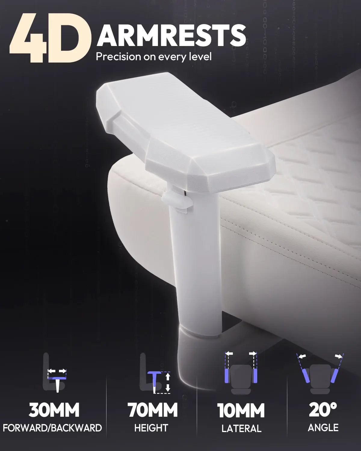 Profitez d'un confort d'assise personnalisé grâce aux accoudoirs 4D entièrement réglables, ajustables avec précision en hauteur, largeur, profondeur et angle. Associés à la fonction de bascule intégrée à 15°, ils vous offrent un mouvement relaxant pendant vos pauses. Vous trouverez ainsi toujours la position idéale pour vos bras et le haut de votre corps.