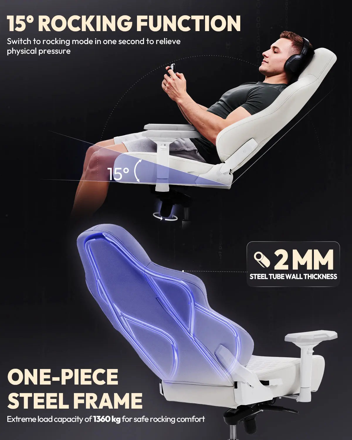 Ce fauteuil gaming est conçu pour une stabilité et une durabilité exceptionnelles. Testé pour supporter une charge maximale de 200 kg, il est doté d'une structure métallique robuste fabriquée à partir de matériaux haut de gamme, garantissant une performance durable même en cas d'utilisation intensive. C'est le choix idéal pour les joueurs passionnés qui privilégient la qualité à long terme.